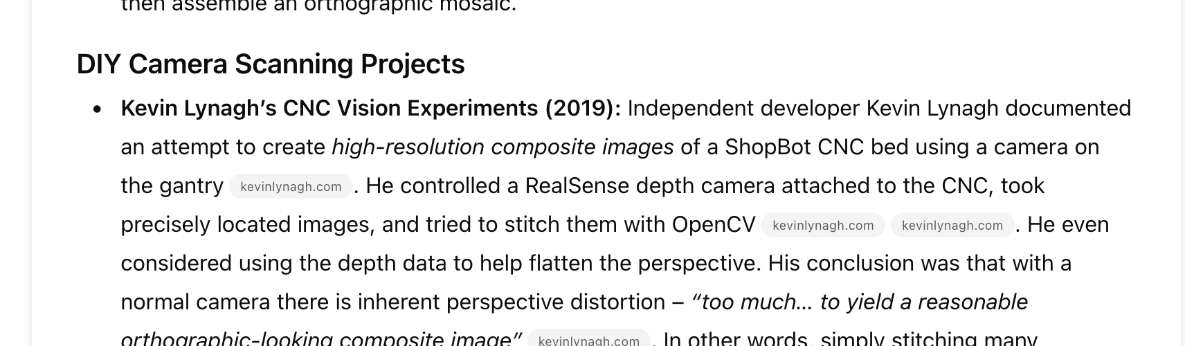 But now that I’m frustrated in my back garden shed, discovering that I’m missing the appropriate drill size / pattern bit / alignment jig and spending hours carefully drilling not-quite-centered holes, I’ve started daydreaming that, surely, a “conversational” CNC router workflow could be better: clamp stuff down to the machine bed, get a high resolution / magnified image of the work, and specify exactly where and what to cut by pointing at stuff in the computer.